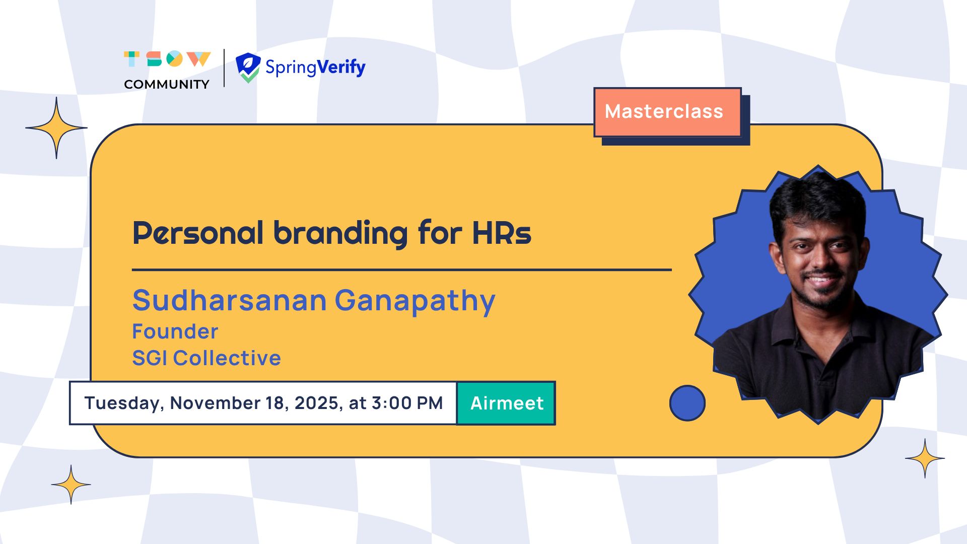 Join for an exclusive session with Sudharsanan Ganapathy, Founder of SGI Collective. Learn how to build your personal brand, grow your influence, and become the HR everyone wants to work with. Don’t miss out register now!