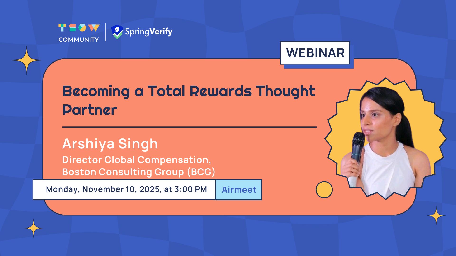 Ready to elevate your Total Rewards strategy? Join us for our community webinar on Becoming a Total Rewards Thought Partner on Let's connect, learn, and share insights to drive value for our teams.. Save your spot here