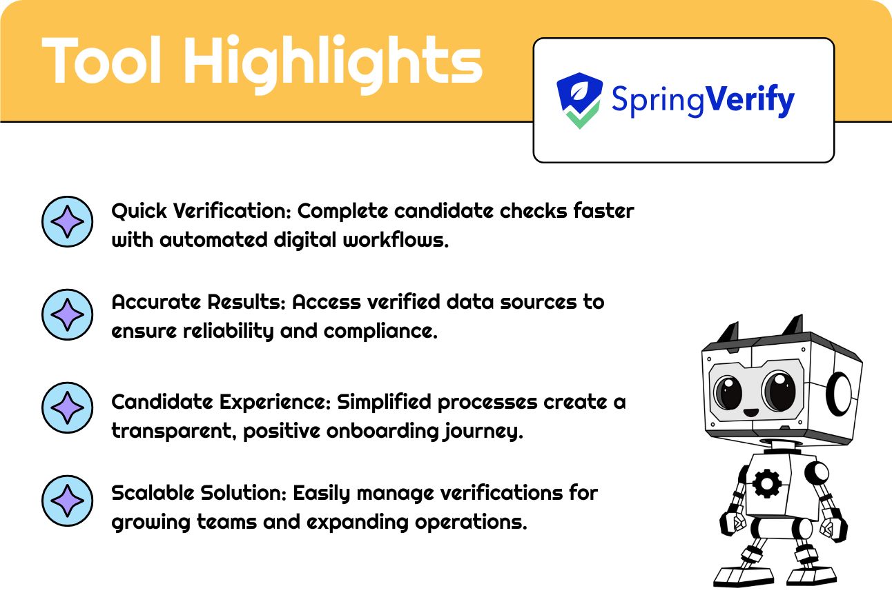 No databases, no digital records. Just handwritten letters and a lot of legwork to confirm honesty and reliability. Fast-forward a century, and tools like SpringVerify have turned what once took weeks (and a few awkward doorstep chats) into a fast, transparent, and candidate-friendly process that takes just minutes.
