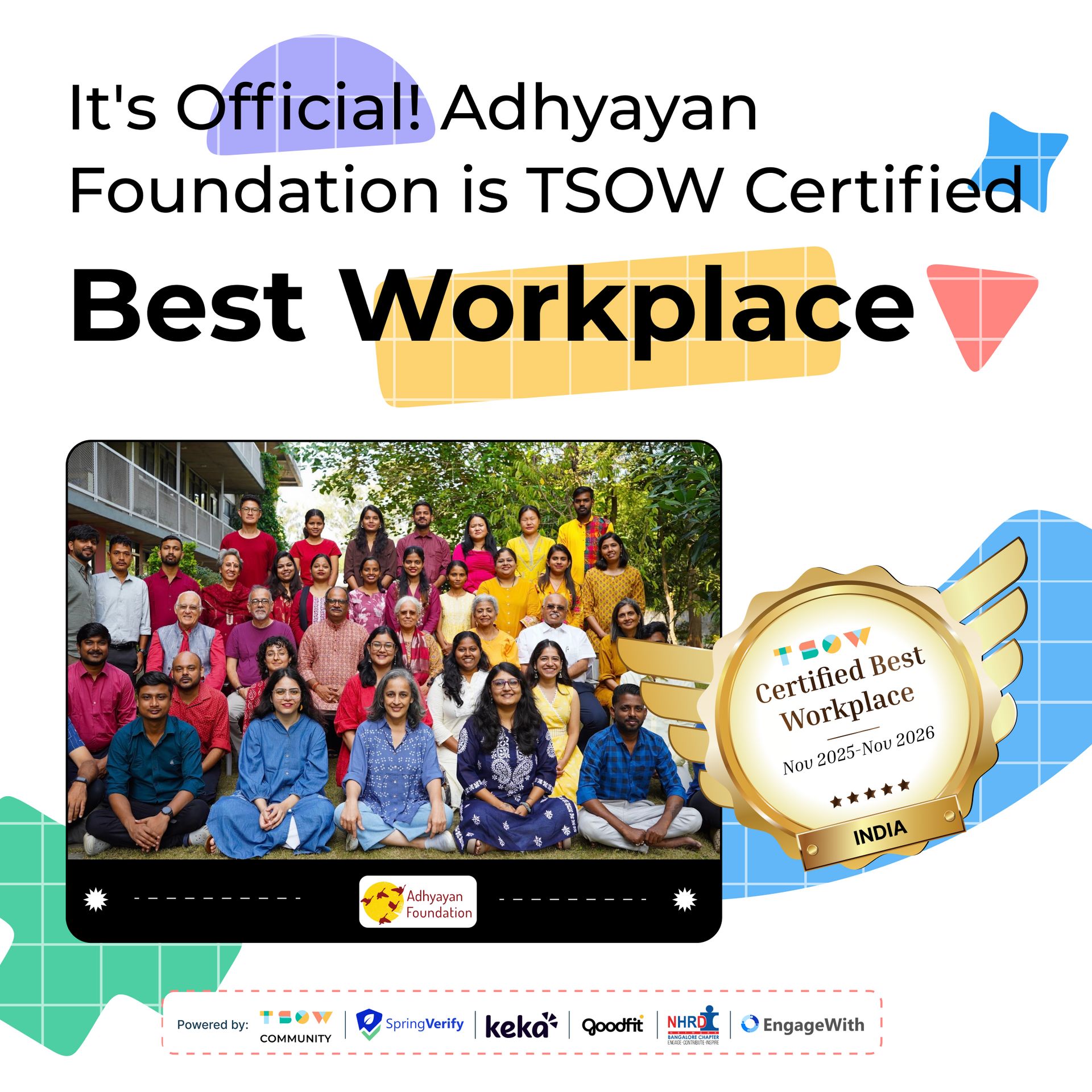 🎉 Adhyayan Foundation is now a TSOW Certified Best Workplace (2025–2026)!
