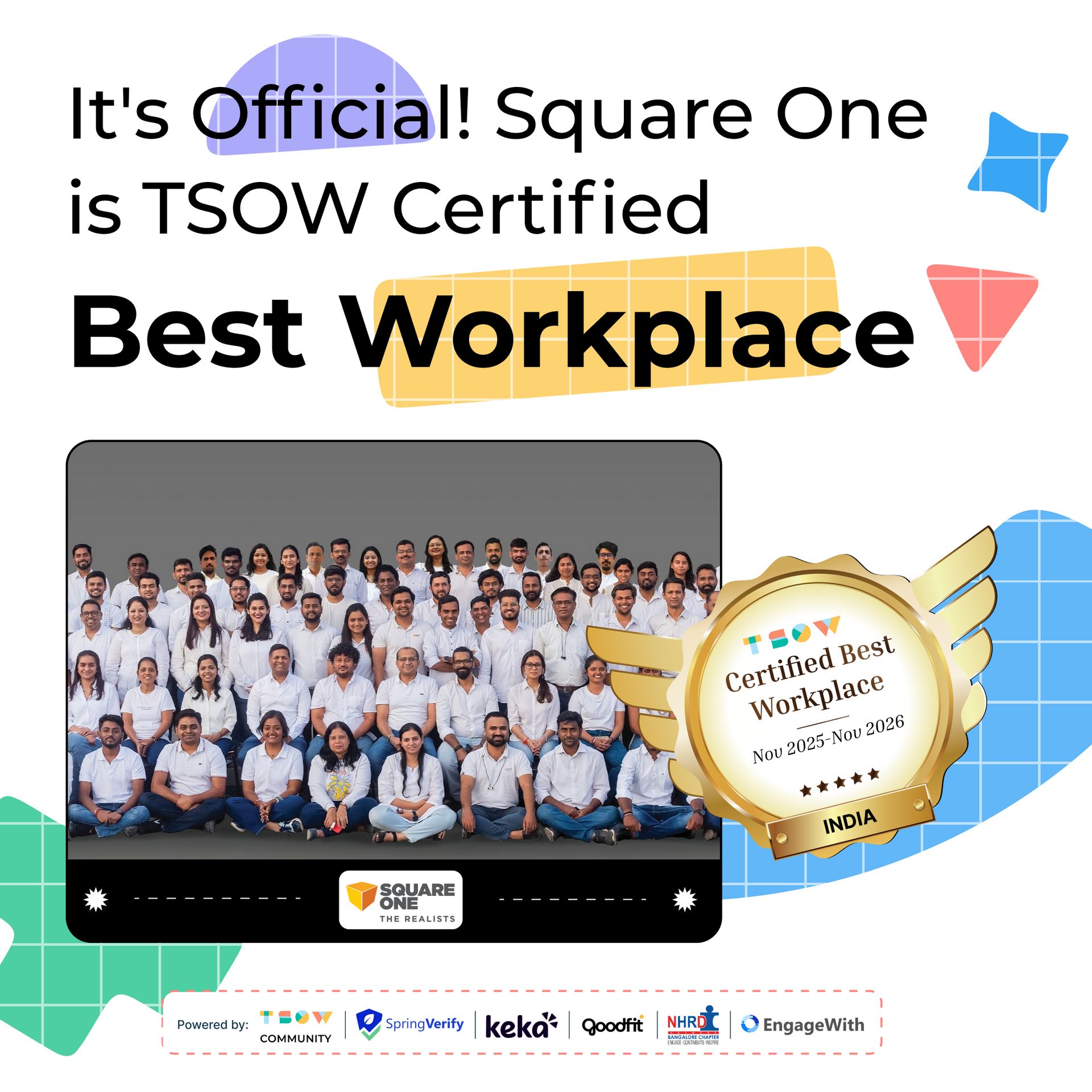 We’re delighted to celebrate Square One Media, now officially recognized as a TSOW Certified Best Workplace. Their culture stands out for its creativity, openness, and commitment to people-first growth.
