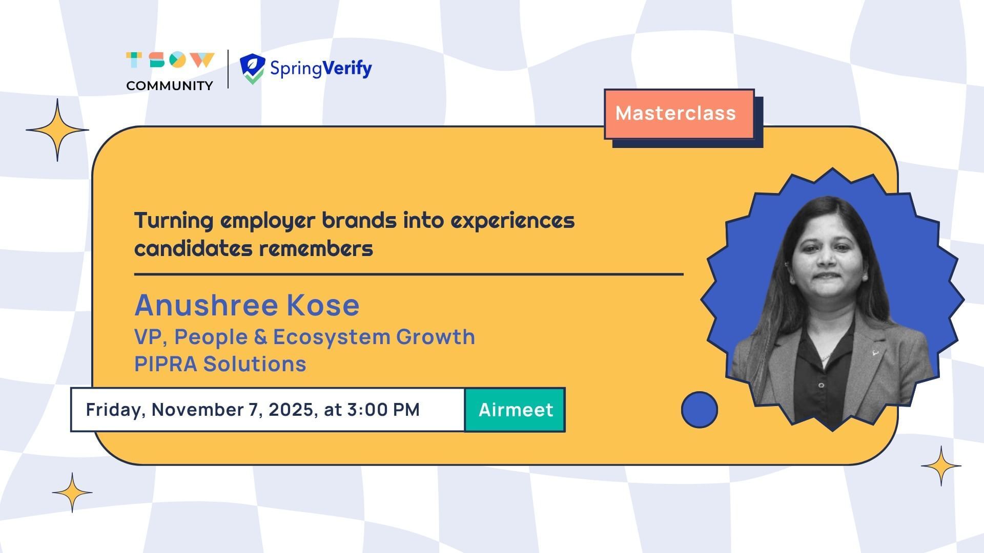 Join us on Nov 7 at 3:00 PM for an exciting TSOW Masterclass on Turning Employer Brands into Experiences! Let's explore how to make your company's identity unforgettable for candidates. Don't miss out on great insights!