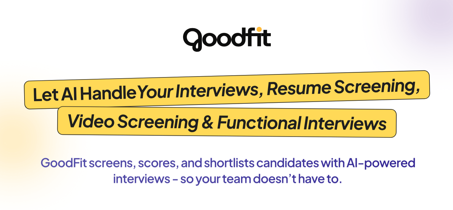 Goodfit is the AI recruiting tool that helps you find teammates who truly fit — fast. Imagine scanning hundreds of CVs in minutes, getting role-aligned scores, and freeing up time to focus on what matters: building the right team.